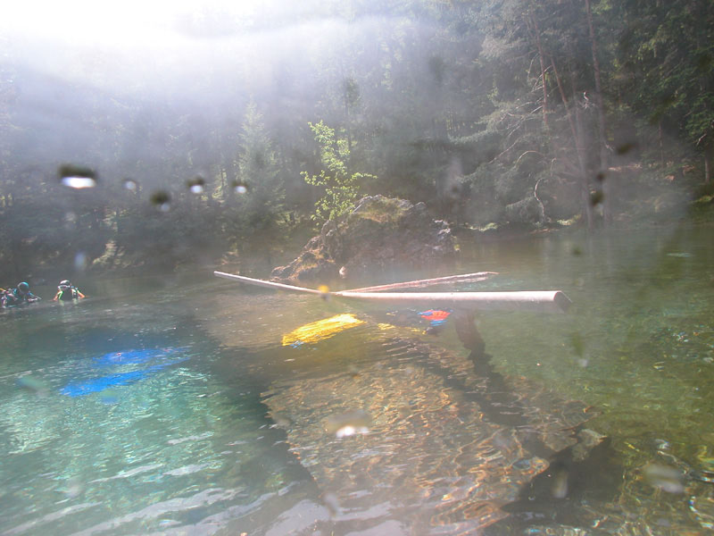 The soft-focus came from temperature differences of water and air. The lake has a temprature of about 4°C and the air of about 24°C. Water in the air condense on the camera's cold lens. |